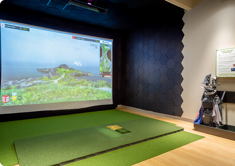 The beauty of golf simulators is: you have many options. You can play 9- or 18-hole rounds on many of the world's most beautiful courses. You can also practice your swing on the virtual driving range or play unique mini games. All from the comfort of your premium indoor, private sim suite.