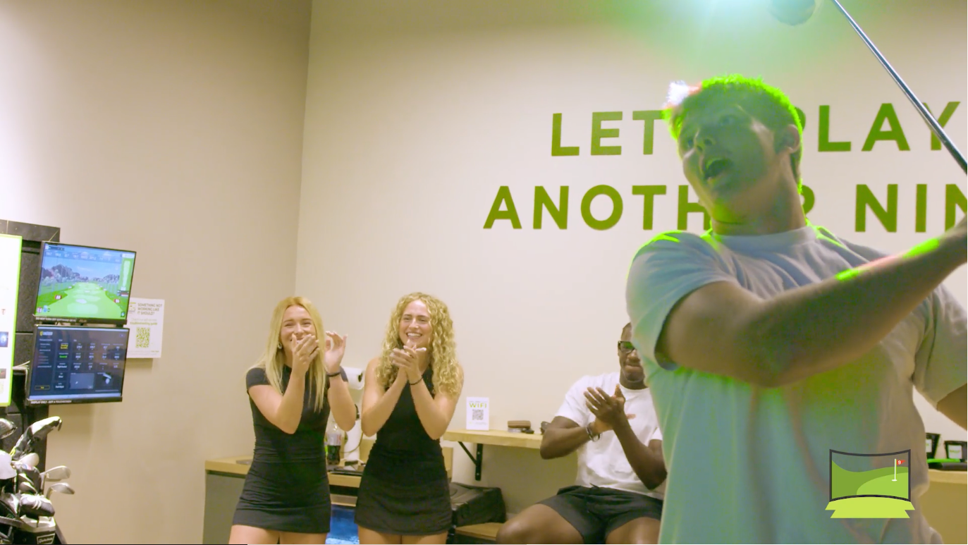Only one golfer is allowed to hit at a time but each simulator suite accommodates up to five guests comfortably. The software allows for score tracking for your entire group as well.