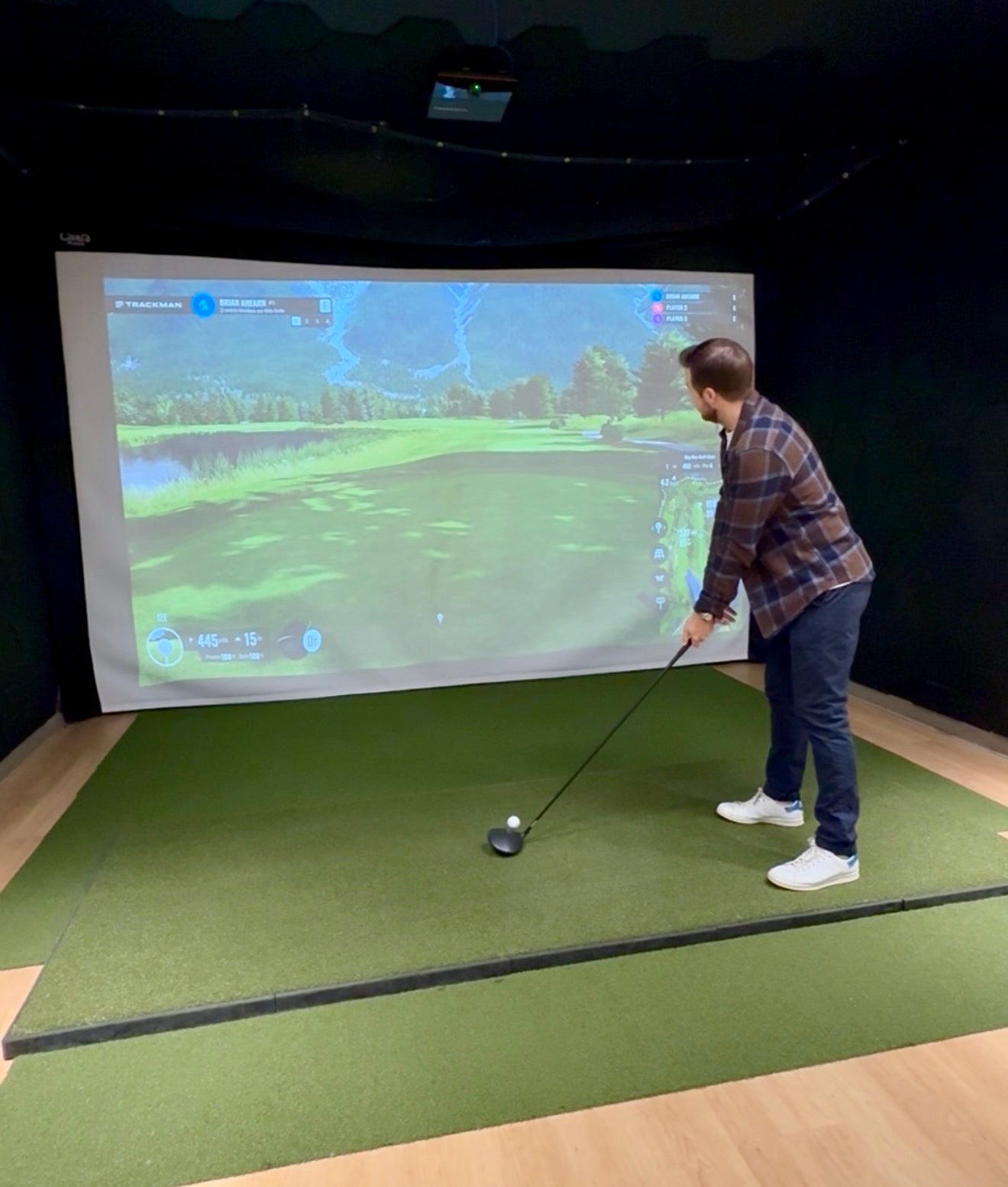 Each private sim suite comes equipped with a Trackman simulator, seating for your group, space for dining, in-suite smart TV with full sports package, and a mini fridge for you to BYOB.
